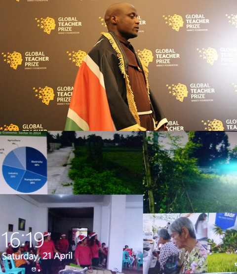 Top image, that's junior math & physics teacher Peter Tabichi of Kenya winning the Global Teacher Prize for 2019 (Busani Bafana, "World's Best Teacher Prize And One Million Dollars Awarded To Kenyan Teacher From Impoverished Community," 25 March 2019, IPS, (ipsnews.net).
